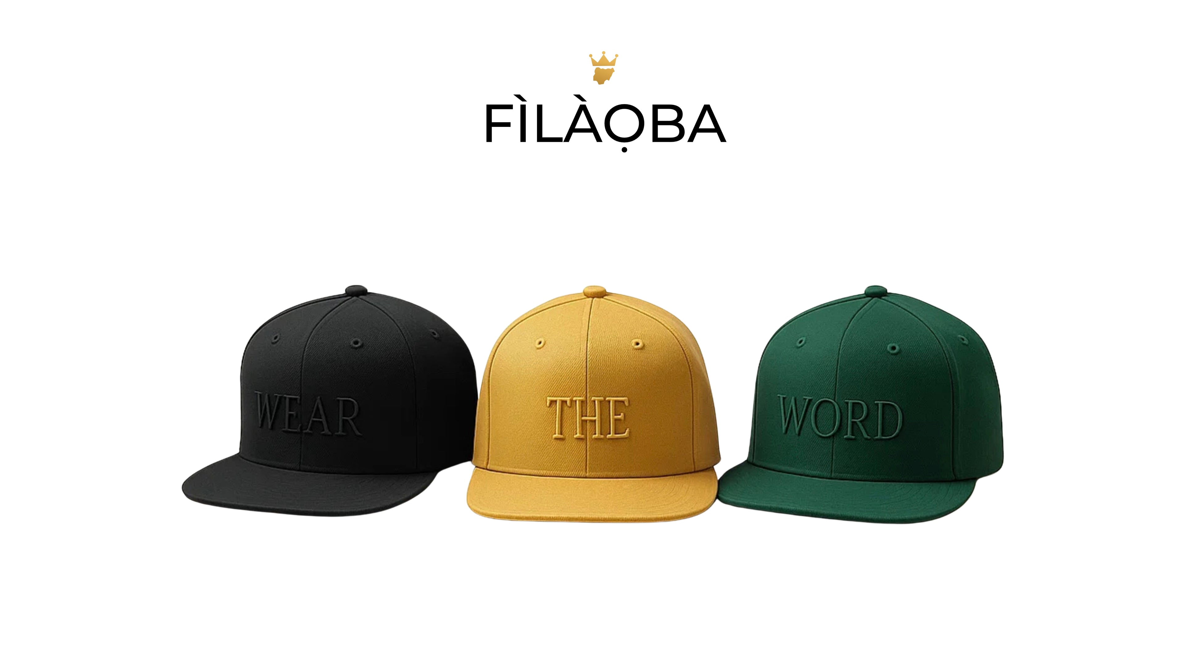 At Fìlàọba, we believe a cap is more than style — it’s identity. Each hat carries carefully embroidered Yorùbá words and expressions, designed to let you wear the word with pride.